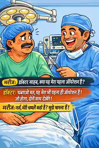 डॉक्टर: घबराओ मत, यह मेरा भी पहला ही ऑपरेशन है। जो होगा, दोनों साथ देखेंगे!